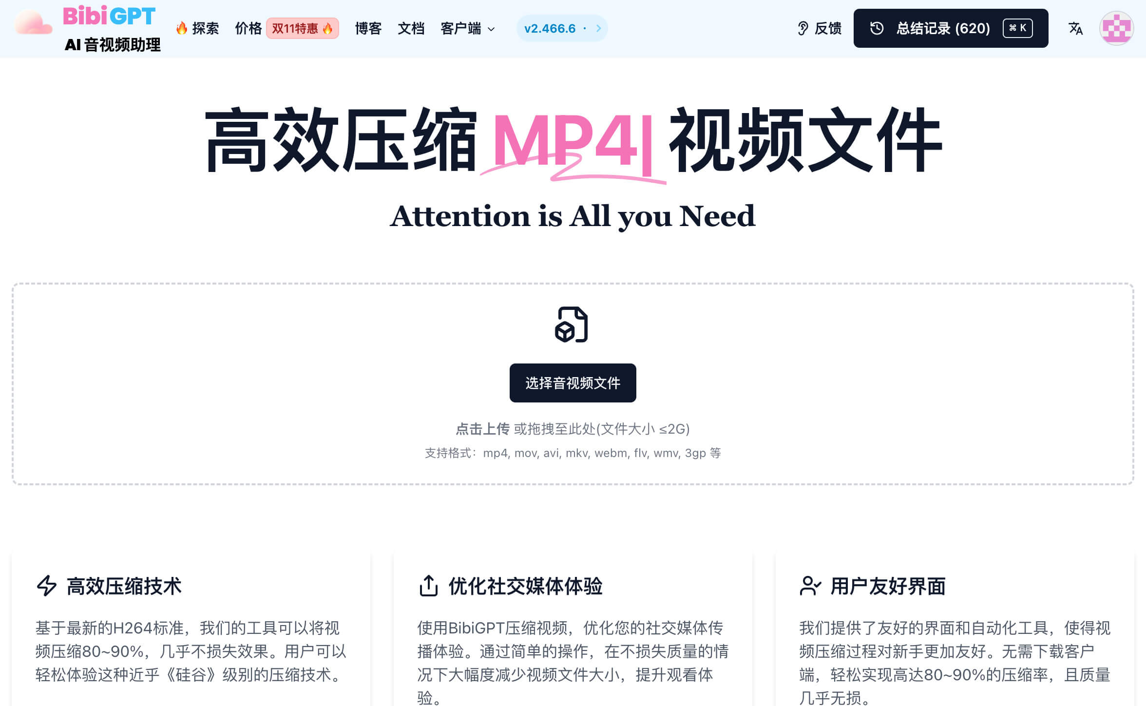 BibiGPT免费视频压缩工具
