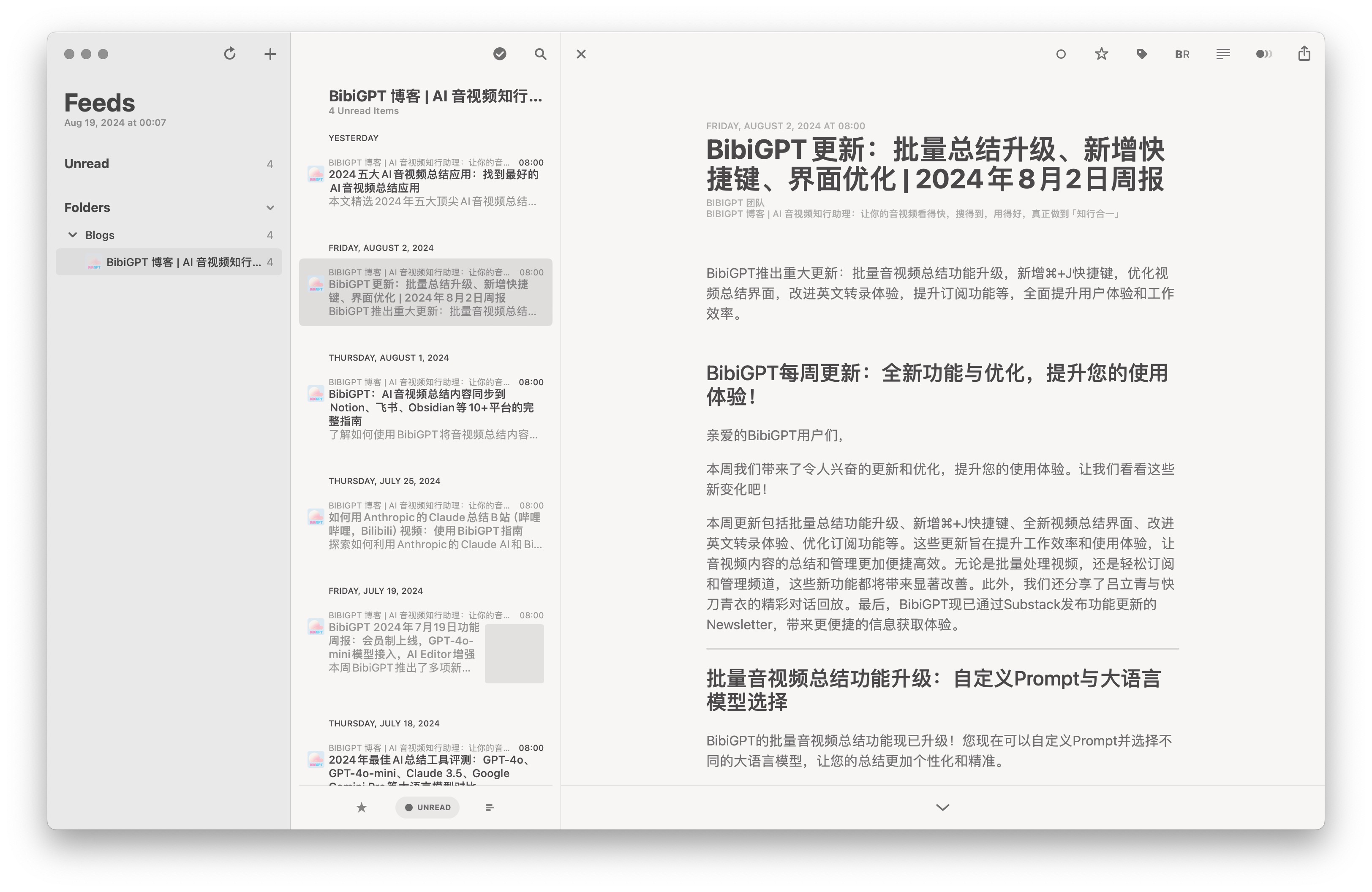 轻松获取最新博客文章:BibiGPT支持RSS订阅