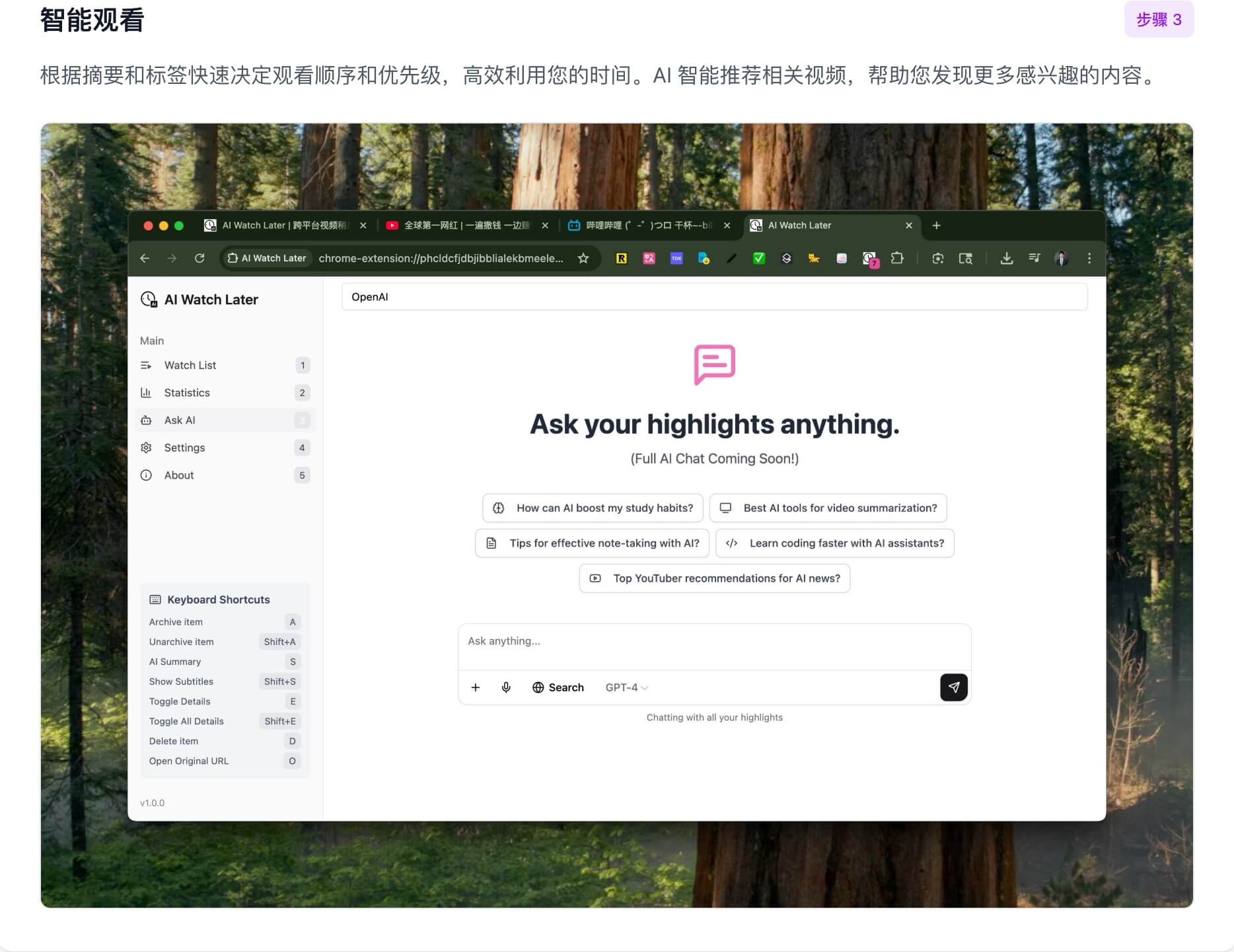 今天就开始使用 AI Watch Later,让您的观看列表变得更聪明、更高效,真正实现"收藏有意义,观看有价值"!