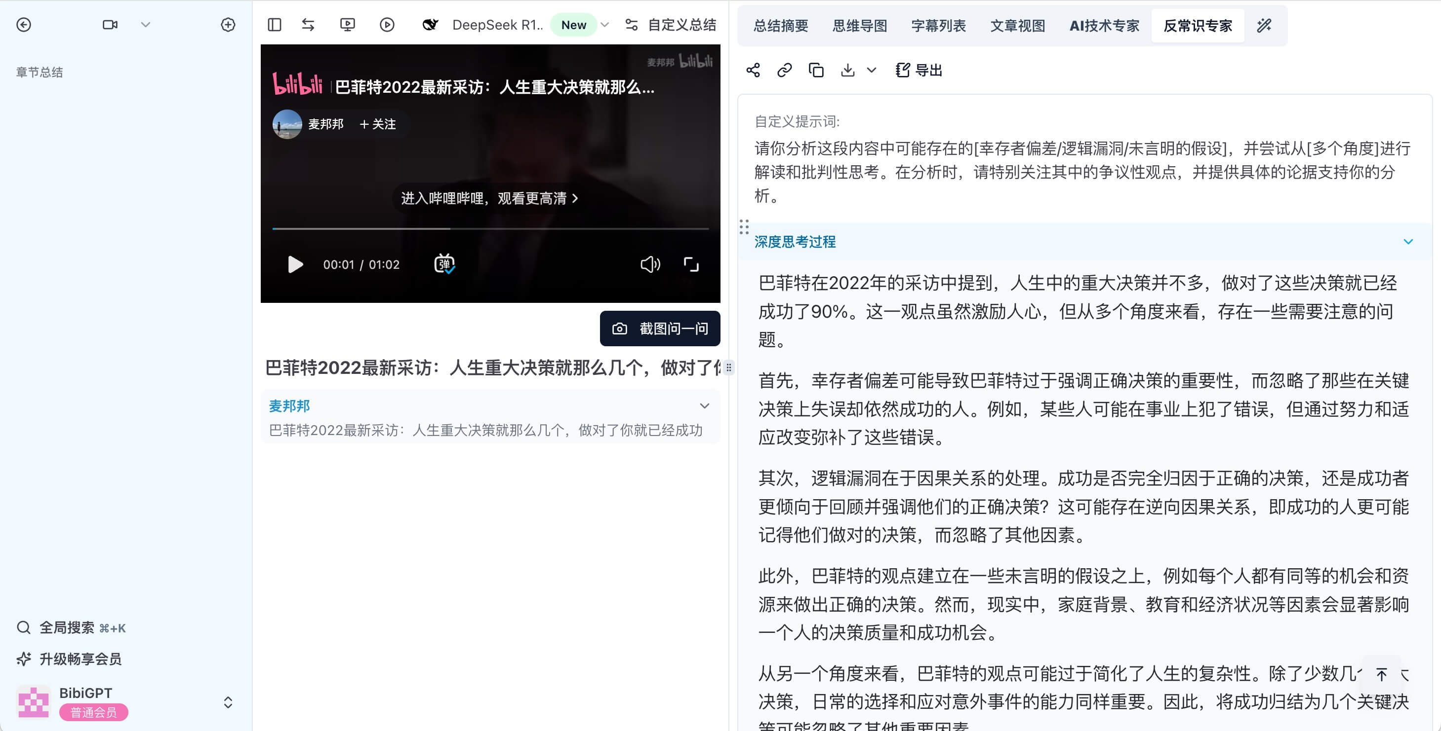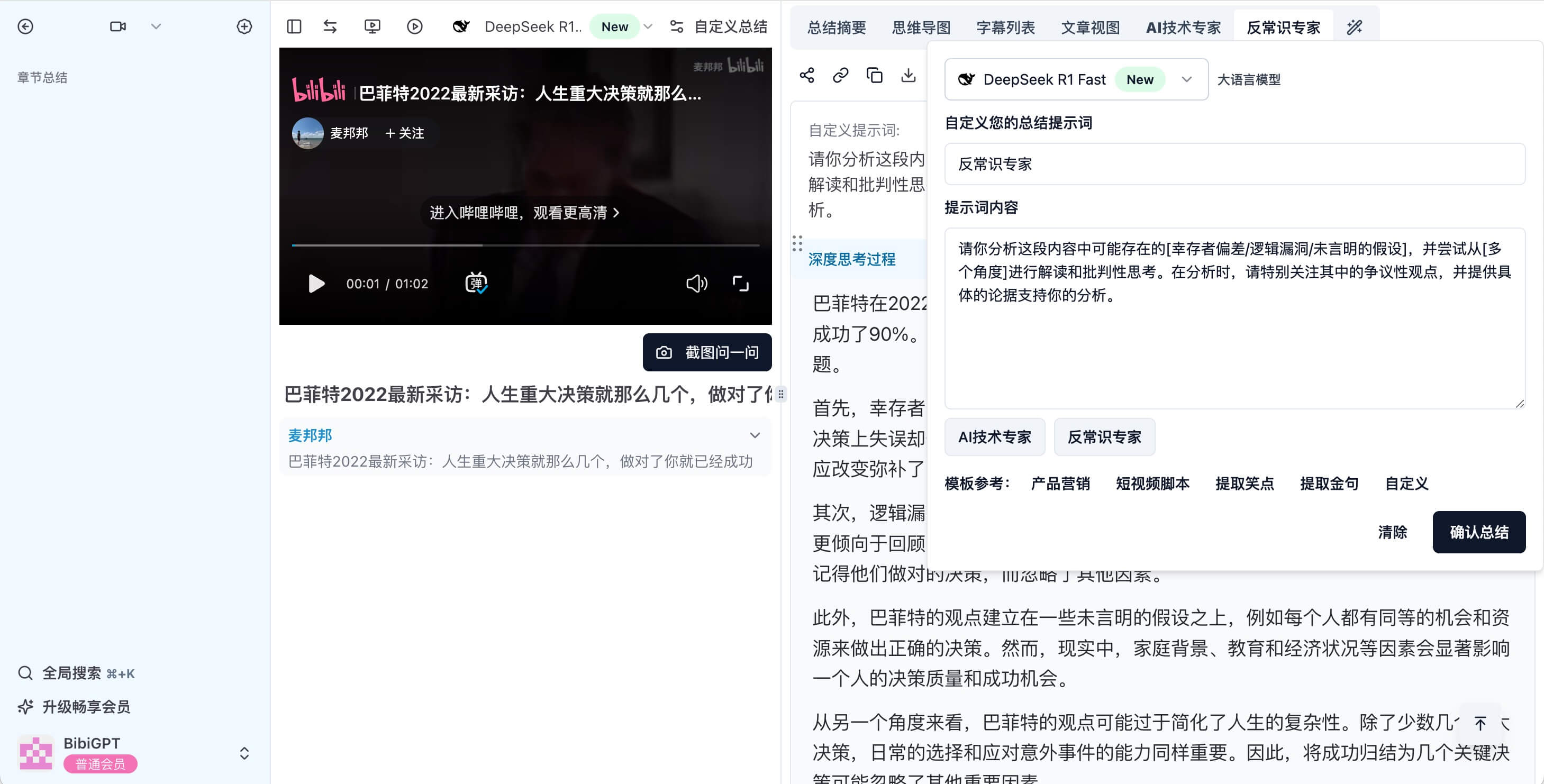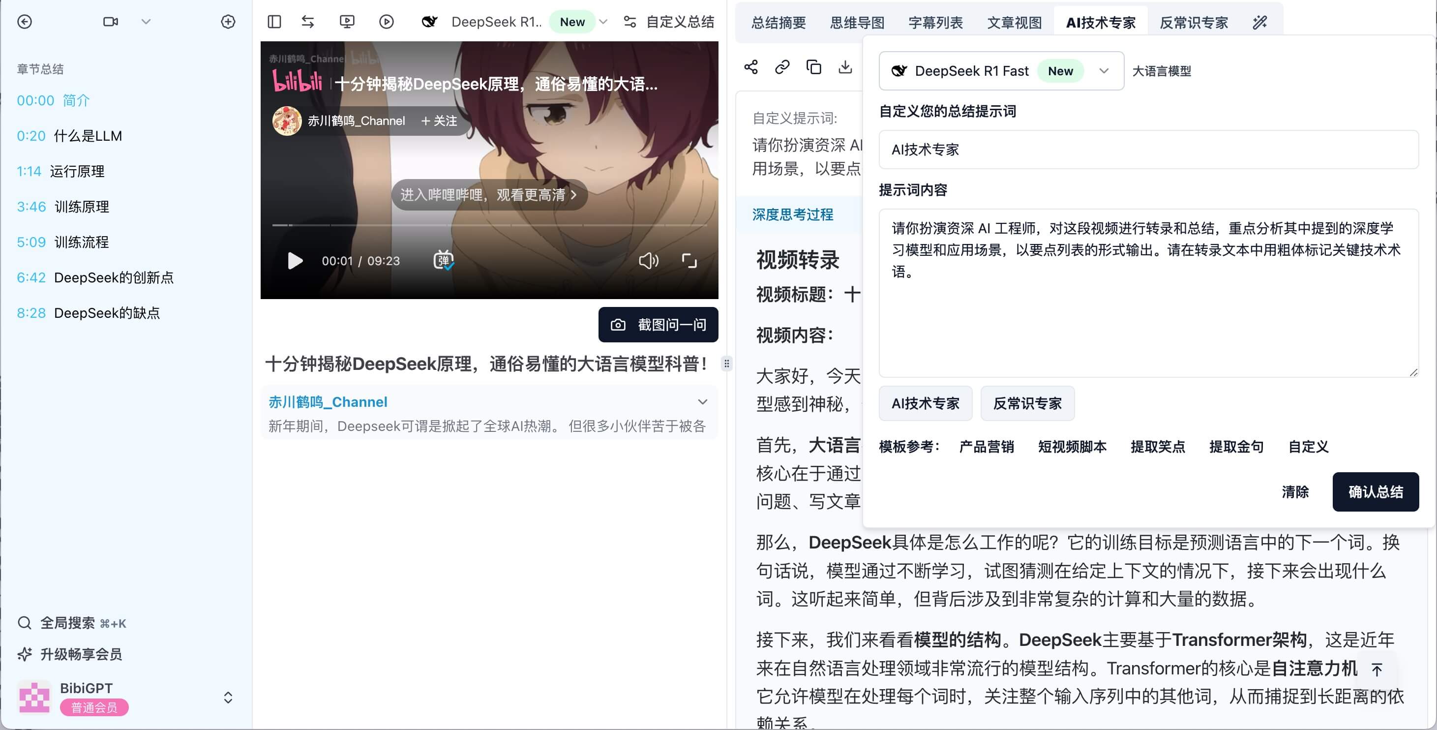 提示词实战:解锁 DeepSeek R1 + BibiGPT 的音视频理解潜能