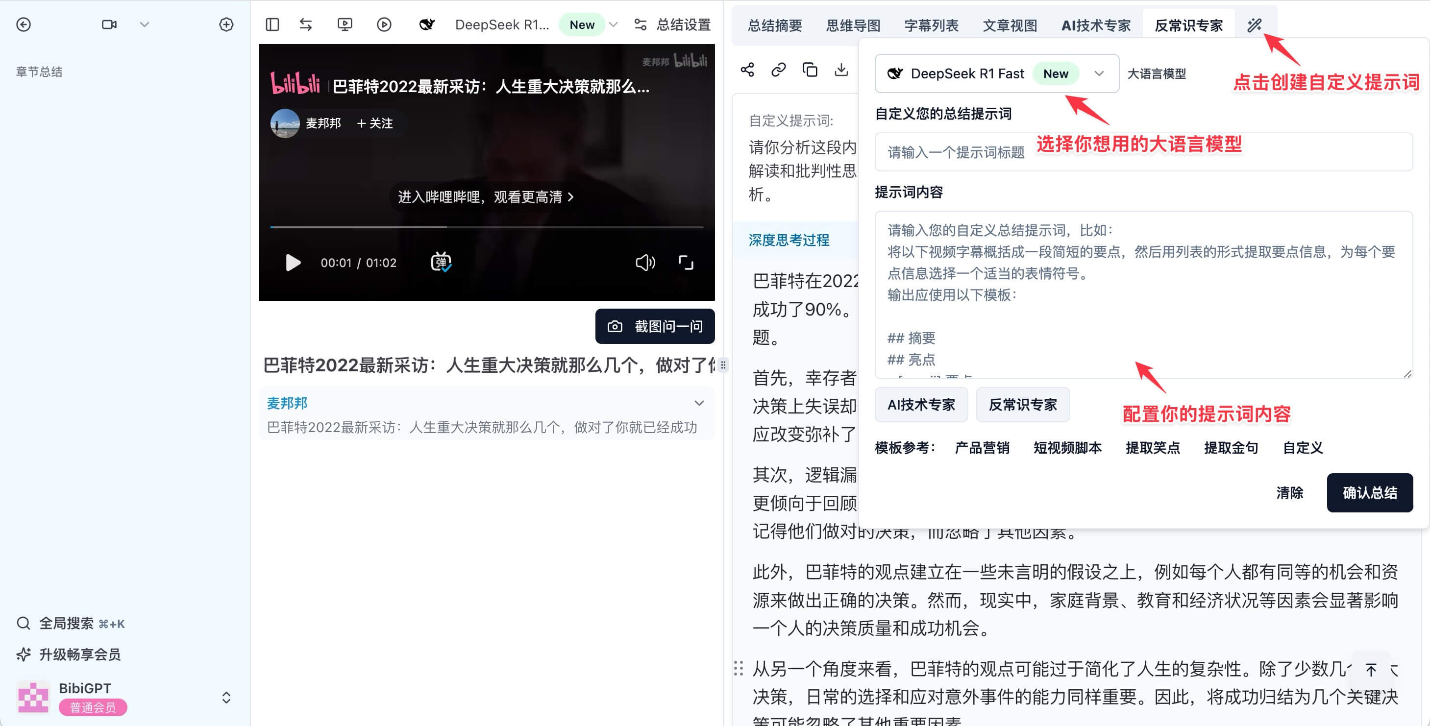 BibiGPT 自定义提示词:驾驭 DeepSeek R1 推理能力的缰绳
