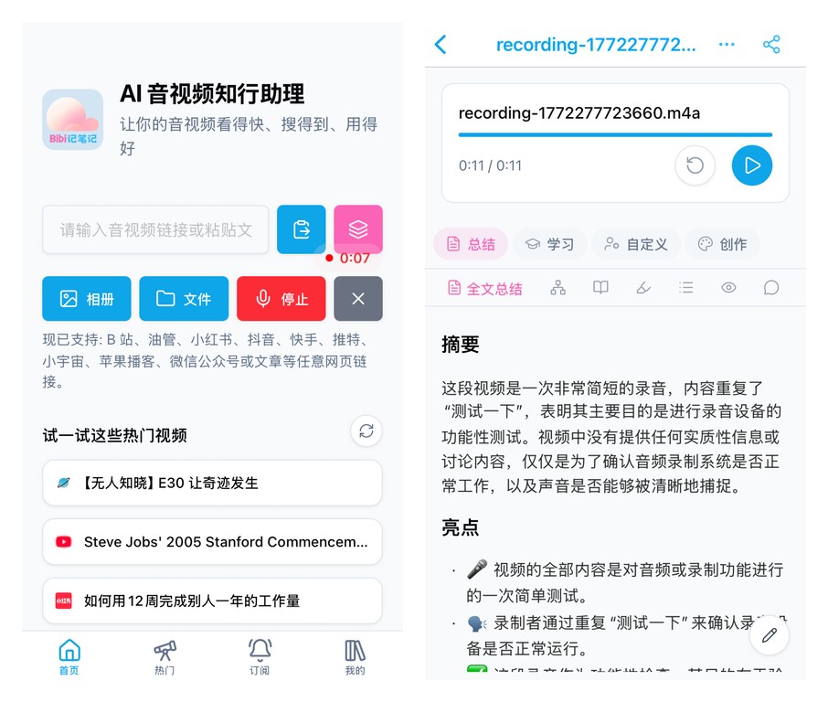我们相信,这些更新能让你在移动端使用 BibiGPT 时更加顺手,从「看得快」到「搜得到」,再到「用得好」,覆盖从内容获取到创作输出的完整流程。