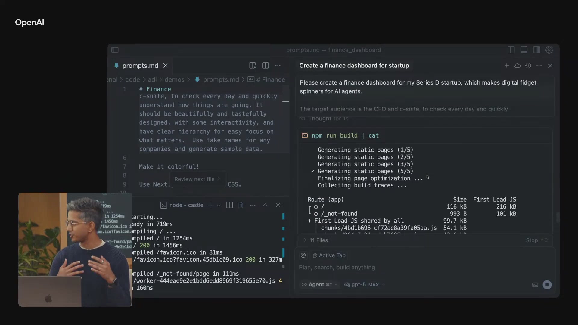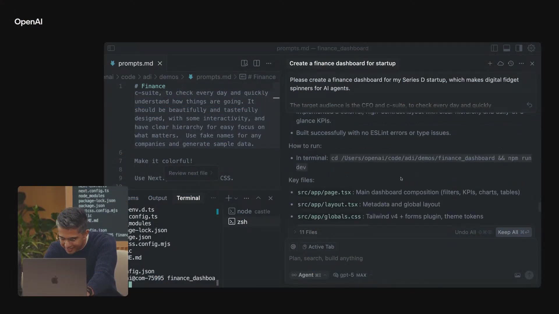 在上一部分中,我们见证了AI智能体根据自然语言指令从零开始构建一个财务数据看板的全过程。现在,我们将看到这个过程的最终成果,并进一步探索GPT-5在更具创造性的任务上的惊人潜力,比如直接用语言构建一个3D游戏。